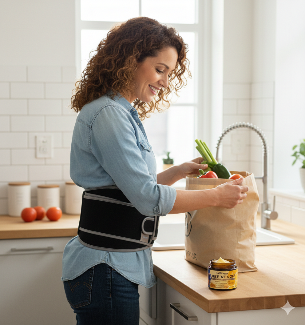 “I used to dread grocery day—just fifteen minutes leaning over the cart sent lightning down my sciatic nerve. Now the Nuve brace warms my back while I shop, and I finish the whole list without stopping once. I even carried the bags up two flights without that familiar ‘knife in the spine.’ By evening my posture’s straight, not hunched, and I finally relax on the couch instead of crawling to it. Nuve gave me my Saturdays back.”